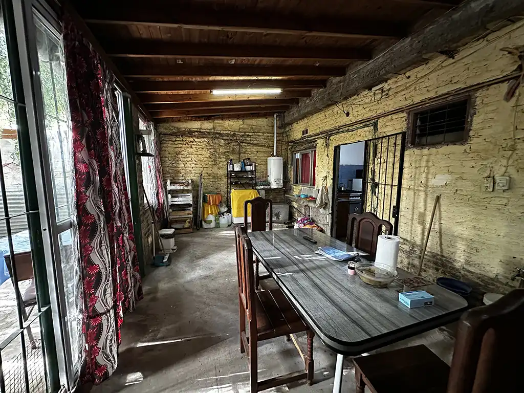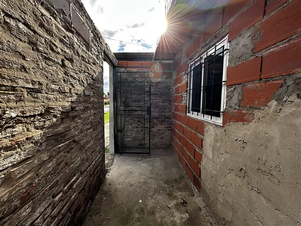 La propiedad cuenta con una casa de tres ambientes. Al ingresar encontramos un cómodo living comedor con una barra que lo vincula con la cocina. A la izquierda se ubica el primer dormitorio, de muy buenas dimensiones. Luego tenemos un segundo dormitorio, el baño completo y, hacia la parte posterior, una galería a terminar y un pequeño espacio de jardín con un galpón también en obra.
