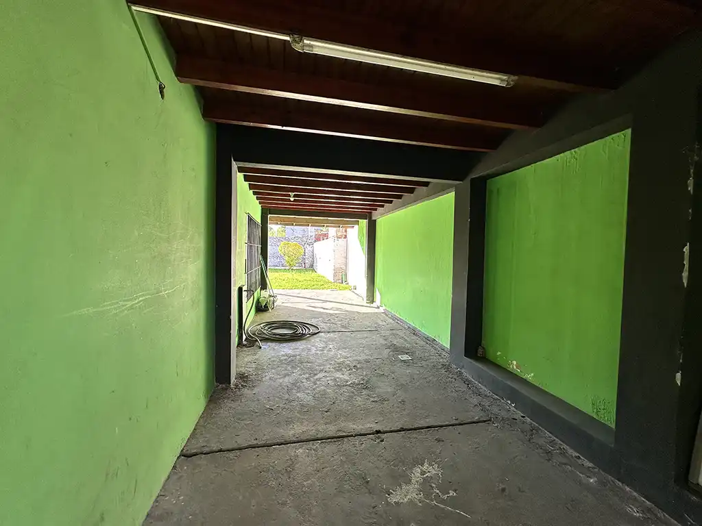 En el exterior, encontramos una galería cubierta, un amplio jardín con parrilla, un galpón al fondo y una cochera cubierta estilo pasante con acceso lateral.